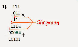 rata kanan. Kemudian angka tersebut dijumlahkan dari kanan ke kiri seperti penjumlahan biasa pada umumnya. Tetapi jika angka yang dijumlahkan melebihi angka basisnya (basis 2), maka
